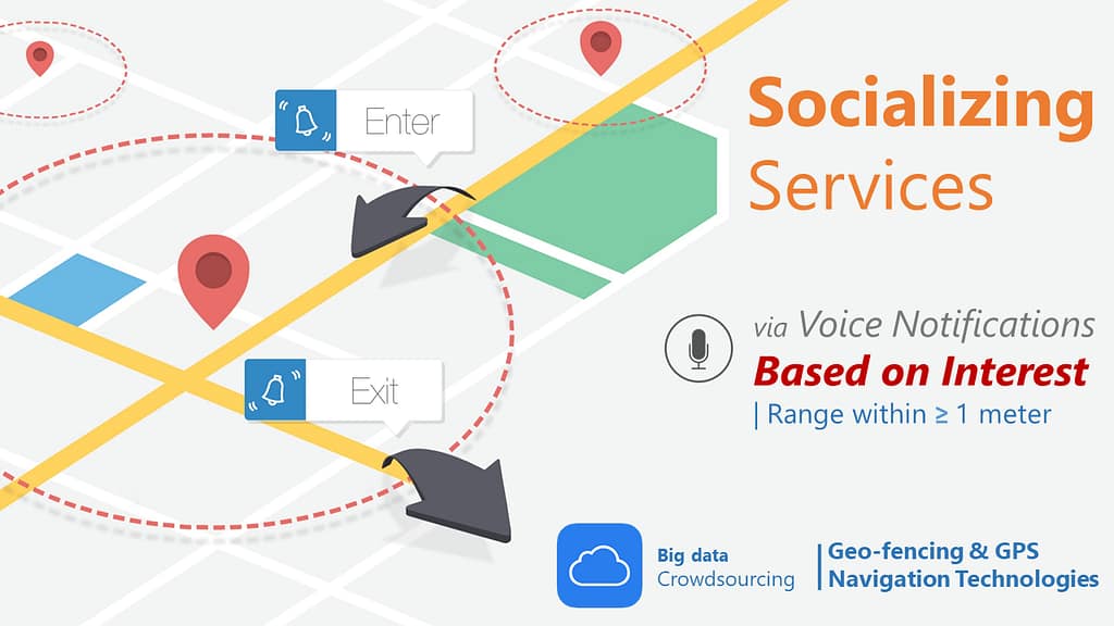 to receive additional data provided by normally sighted people (crowdsourcing) to notify users (via Geo-Fencing) about nearby places of interest (such as benches or easy-access venues) thus allowing them to interact more with their surroundings.